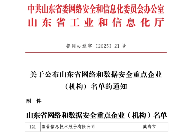 近期,山东省委网信办、山东省工信厅正式公布“山东省网络和数据安全重点企业(组织)名单”。本次评选共遴选出147家重点企业和33家重点组织,royal皇家88信息凭借在密码技术领域的自主创新实力、全栈式数据安全解决方案及突出的行业贡献成功入选。